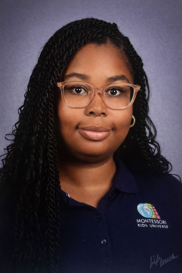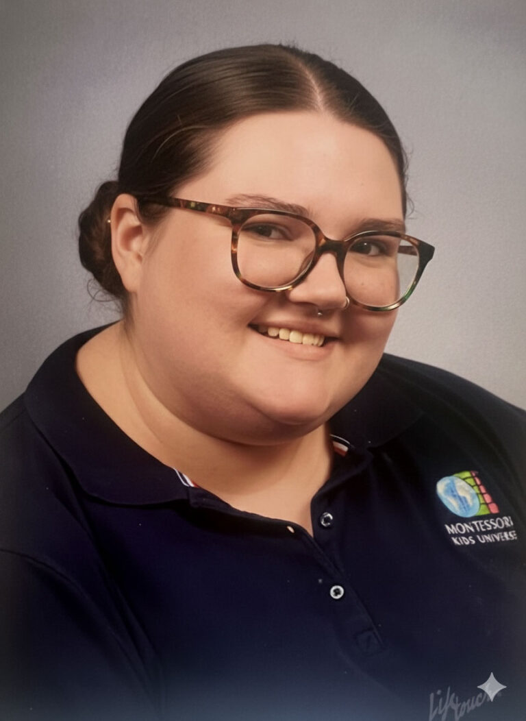 Ms. Ashleigh, our dedicated Casa Assistant and a passionate educator with an Associate’s degree in Elementary Education. Ms. Minor is dedicated to ensuring a safe and supportive place for children to learn and grow. She has hands-on experience leading small group instruction and providing one-on-one student support from her time as student teaching.