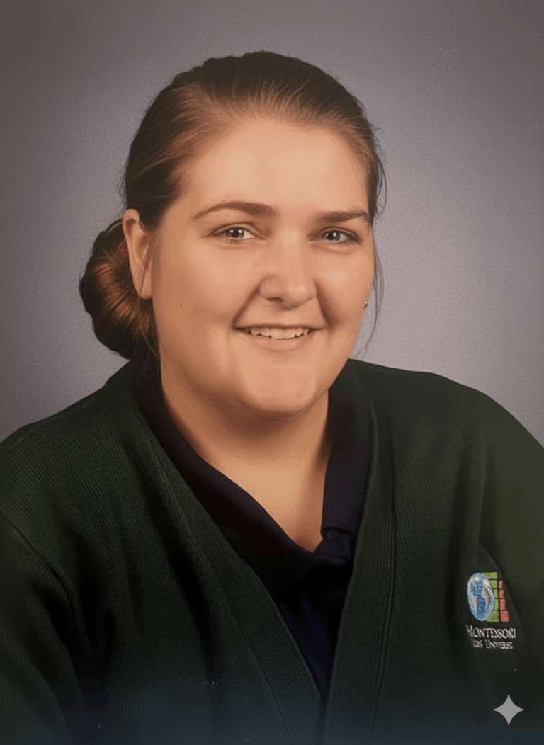 Her teaching philosophy centers on encouraging exploration and natural curiosity. She is committed to lifelong learning, currently working toward her Early Childhood degree, and holds a Montessori certification. In her free time, she cherishes moments with her family, finds peace on nature walks, and enjoys the creative outlets of reading and crocheting.